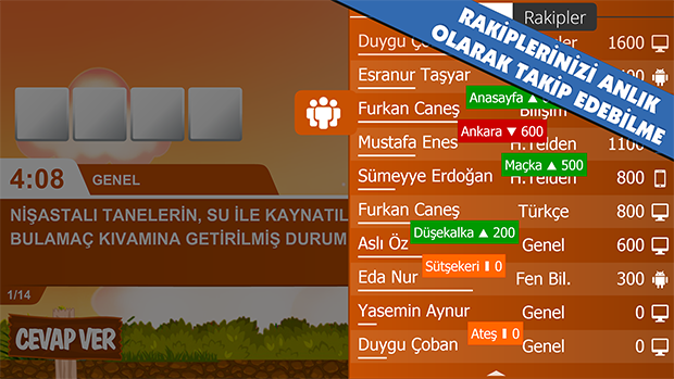 Yarışırken rakiplerinizin puan durumunu, kaçıncı soruda olduklarını anlık olarak takip edin.