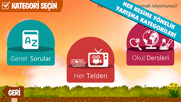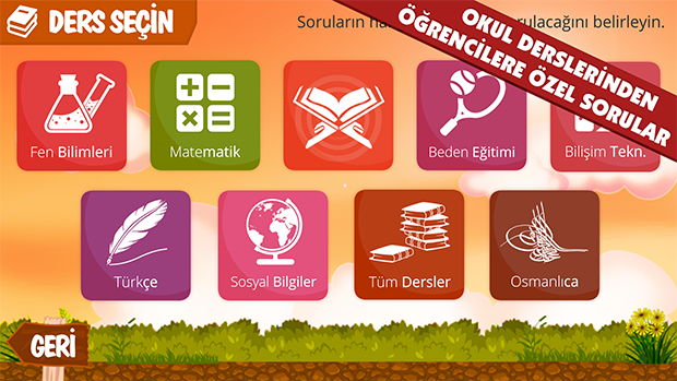 Ortaokul derslerine ait sorulardan oluşan Okul Dersleri kategorisinde yarışarak eğlenerek öğrenin.