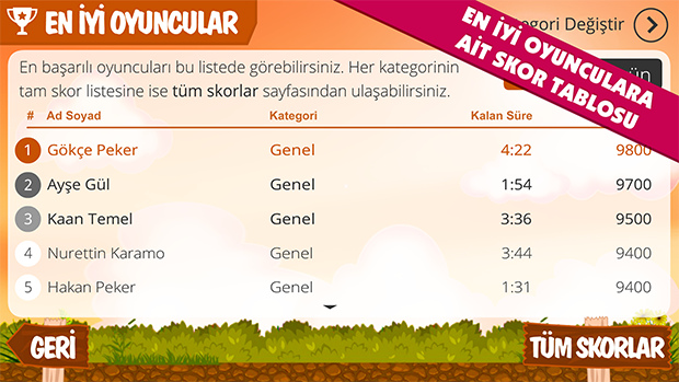 Günlük, aylık ve tüm zamanlara ait farklı skor tabloları ile en iyinin kim olduğunu herkese gösterin.