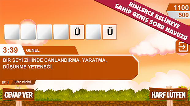 Eğlenceli vakitler geçireceğiniz kelime oyunumuza hoşgeldiniz. Bu oyunda yeni kelimeler öğrenerek kelime hazinenizi genişletebilir ve kelime bilginizi ölçebilirsiniz.